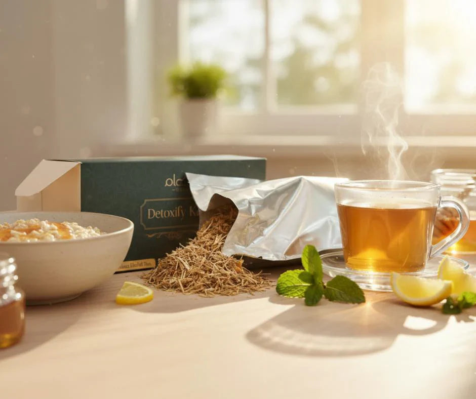 For better taste and results, add a few drops of lemon and 1 teaspoon of Shifaam Shifa Honey to your Detoxify Kahwa before drinking.
